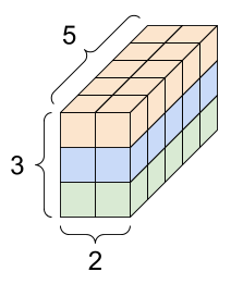 एक 3-अक्ष टेंसर, आकार: [3, 2, 5] | ||