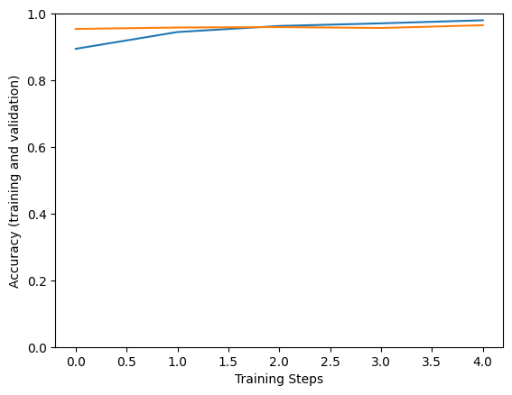 Epoch 1/5 183/183 [==============================] - 186s 843ms/step - loss: 0.8805 - accuracy: 0.8945 - val_loss: 0.7559 - val_accuracy: 0.9542 Epoch 2/5 183/183 [==============================] - 150s 817ms/step - loss: 0.6549 - accuracy: 0.9449 - val_loss: 0.5974 - val_accuracy: 0.9583 Epoch 3/5 183/183 [==============================] - 149s 816ms/step - loss: 0.5783 - accuracy: 0.9630 - val_loss: 0.6161 - val_accuracy: 0.9597 Epoch 4/5 183/183 [==============================] - 149s 816ms/step - loss: 0.5486 - accuracy: 0.9709 - val_loss: 0.5569 - val_accuracy: 0.9569 Epoch 5/5 183/183 [==============================] - 149s 816ms/step - loss: 0.5229 - accuracy: 0.9801 - val_loss: 0.6007 - val_accuracy: 0.9653