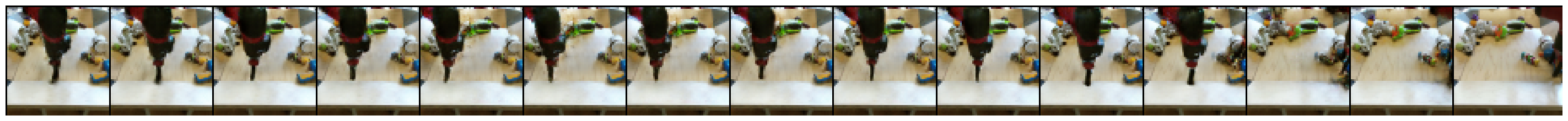 Test videos shape [batch_size, start/end frame, height, width, num_channels]: (16, 2, 64, 64, 3)
