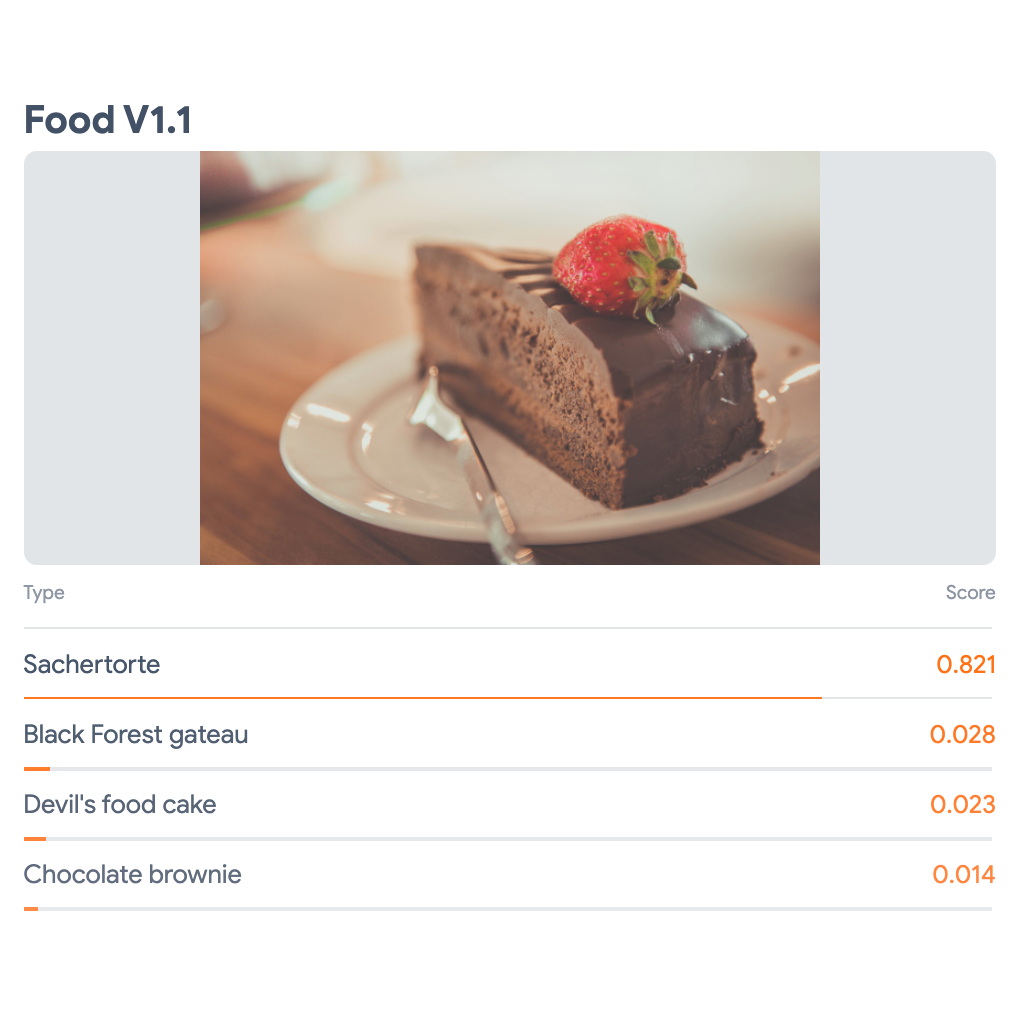 Utilizza questo modello TFLite per classificare le foto di cibo su un dispositivo mobile.