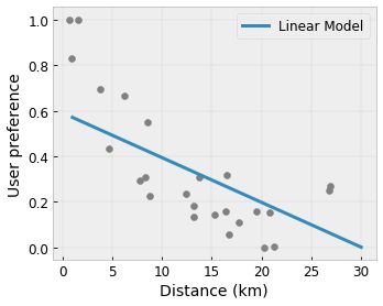 Katakanlah contoh kisi sebelumnya mewakili kebahagiaan pengguna terpelajar dengan kedai kopi lokal yang disarankan yang dihitung menggunakan fitur: