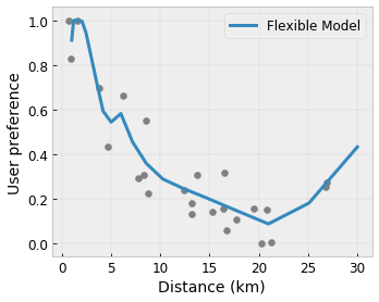 • 单调性:您可以指定输出相对于输入仅单调递增/递减。在我们的示例中,您可以指定增大消费者到咖啡店的距离仅应降低预测的用户偏好。