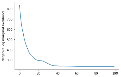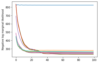 Text(0, 0.5, 'Negative log marginal likelihood')