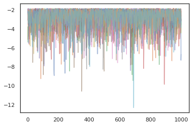 plt.plot(log_probs[:, i], alpha=0.5)