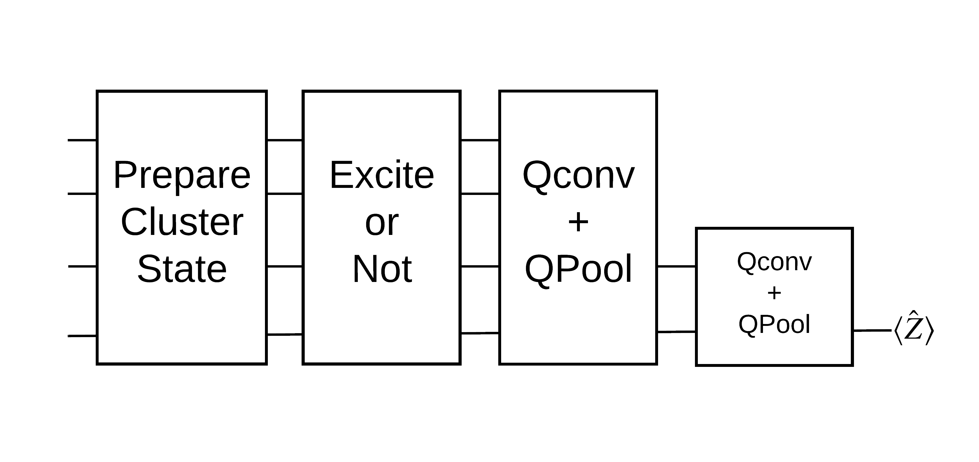 Tüm bitlerde \(\langle \hat{Z}_n \rangle\) okuyarak bir kuantum evrişim katmanı uygulayın ve ardından yoğun bağlantılı bir sinir ağı uygulayın.