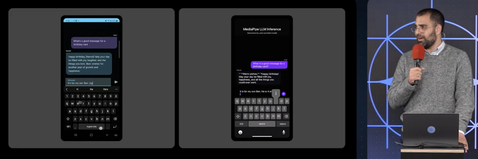 Assista a uma demonstração do Gemma Developer Day que mostra como implantar modelos Gemma em dispositivos usando a API de inferência MediaPipe LLM.