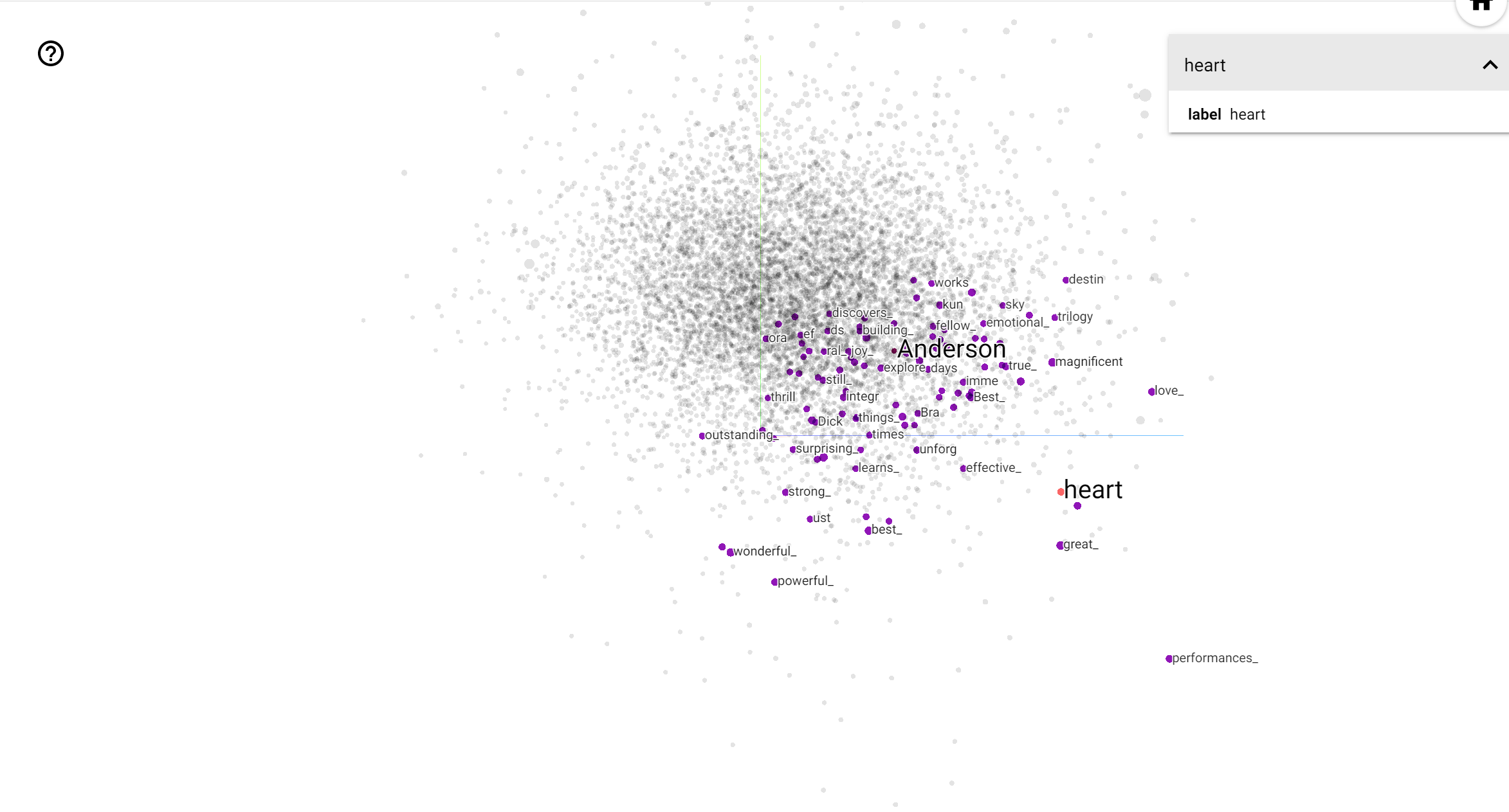 In questo spazio, Hitchcock è più vicino a parole come nightmare , che è probabilmente dovuto al fatto che egli è conosciuto come il "Master of Suspense", mentre Anderson è più vicino alla parola heart , che è coerente con il suo stile e inesorabilmente dettagliato commovente .