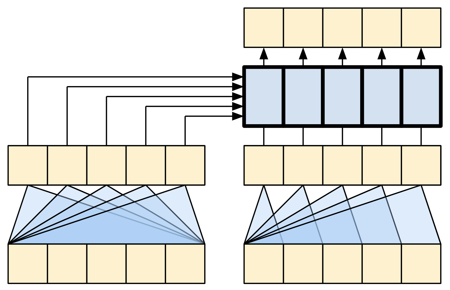 - For a time-series, the output for a time-step is calculated from the entire history instead of only the inputs and current hidden-state. This may be less efficient.