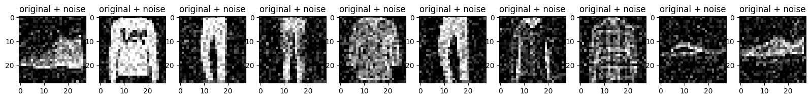 plt.title("original + noise")
