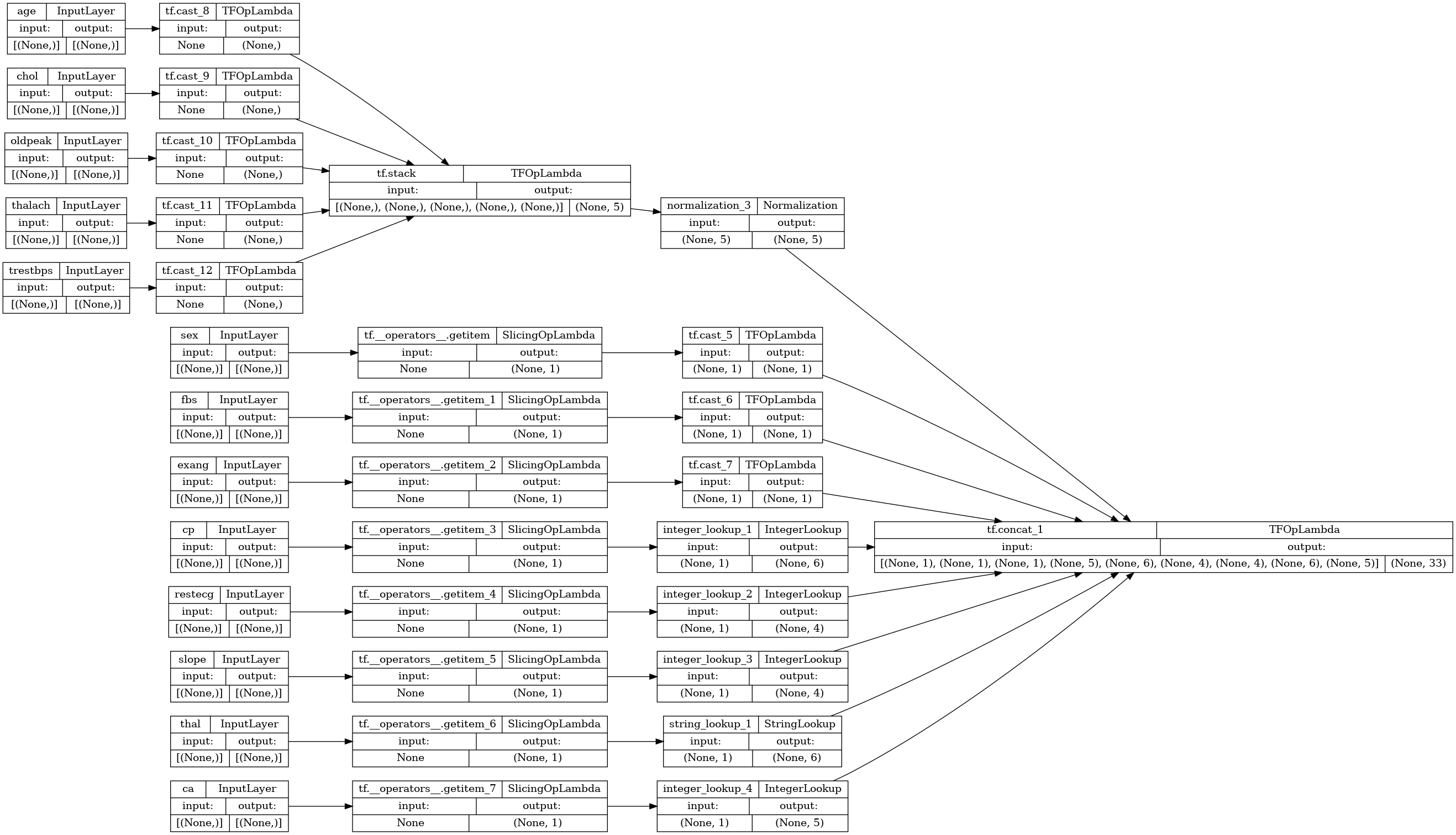 tf.keras.utils.plot_model(preprocessor, rankdir="LR", show_shapes=True)